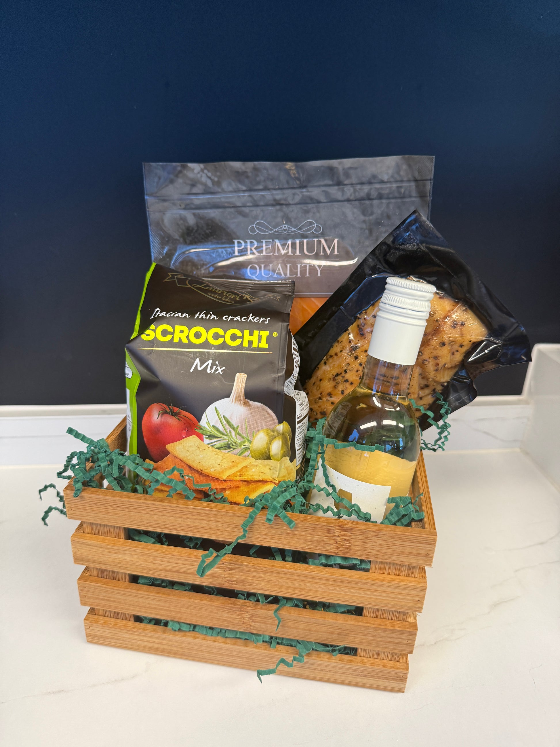 Verras uw relaties of geliefden met dit smaakvolle kerstpakket. In een stijlvol kistje vindt u: